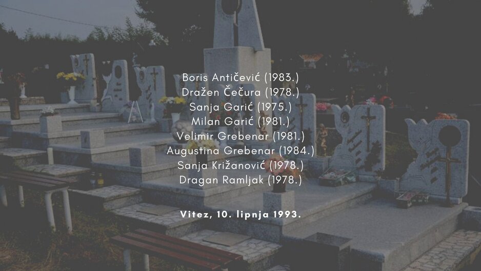 Junski ljetni dan trebao je biti jedan od sretnijih i bezbrižnih za osmero djece Viteza koja su ubijena oko 20:45 sati na današnji dan 1993. godine od granate navođene s položaja Armije BiH. Za smrt Sanje Garić i njenog brata Milana, Dragana Ramljaka, Dražena Čečure, Borisa Antičevića, Sanje Križanović te Augustine Grebenar i njenog brata Velimira niko nije procesuiran, ali ni za ranjavanje šest njihovih prijatelja koji su se igrali s njima.