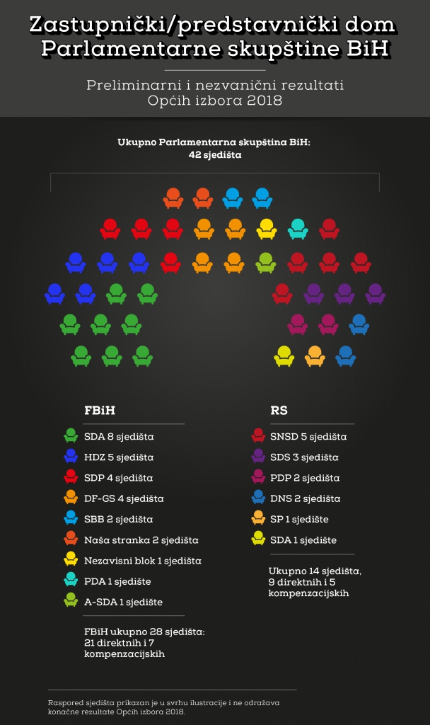 Nakon obrađenih 89% glasačkih listića, može se pretpostaviti kako će izgledati sastav Parlamenta Bosne i Hercegovine