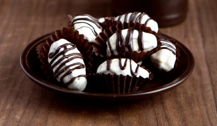 Bijelu čokoladu otopiti na umjerenoj temperaturi pa preliti punjene hurme, pa otopljenom crnom čokoladom praviti cik-cak šare.