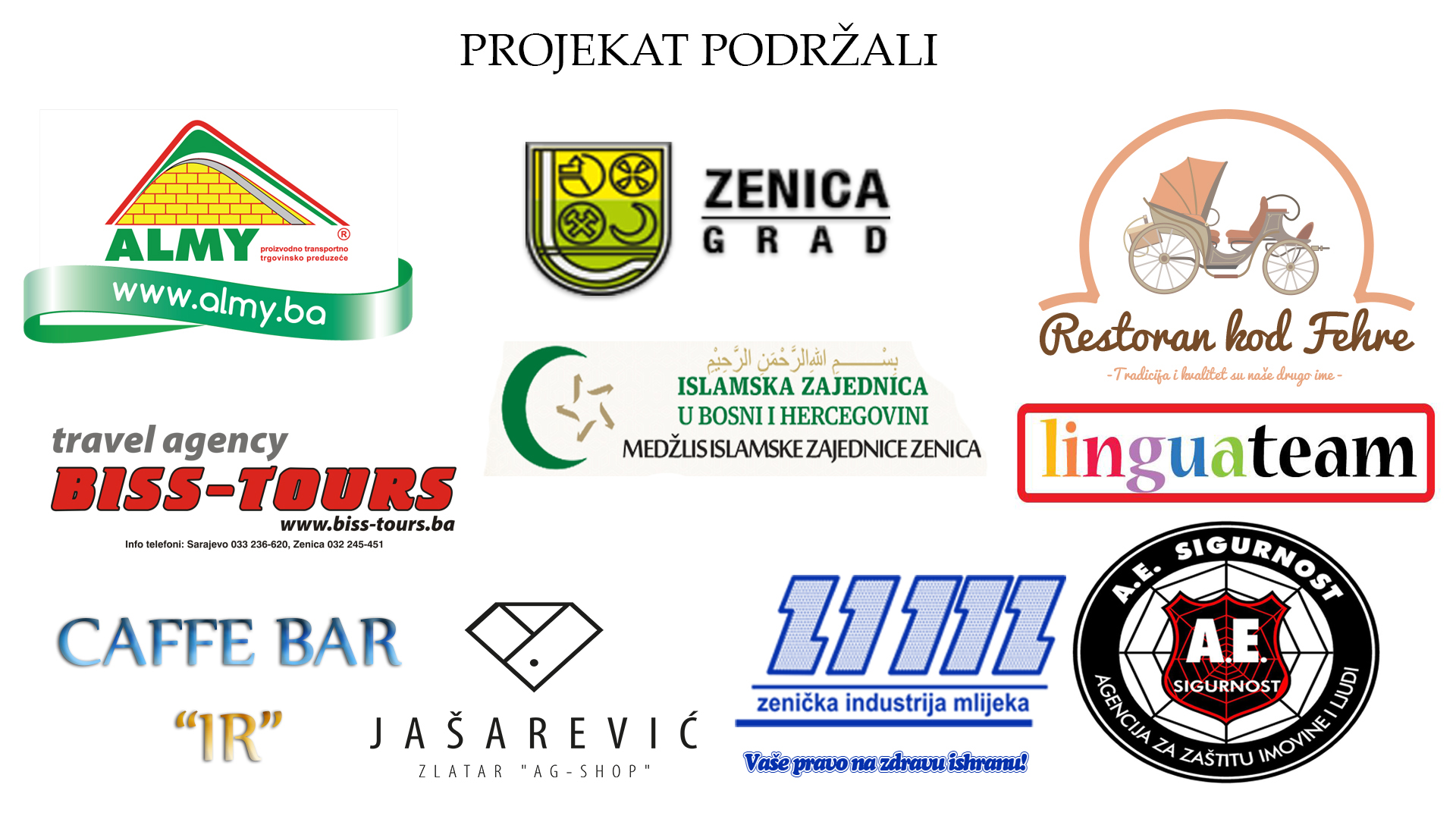 Veliku zahvalnost, osim Medžlisu IZ Zenica i imamima, ovim putem upućujemo i sponzorima koji su omogućili realizaciju jedinstvenog projekta i to Grad Zenica, Almy, Restoran kod Fehre, Biss-Tours, Centar za strane jezike ‘Linguateam’, Caffe bar IR, Ag-shop Jašarević, Zenička industrija mlijeka i AE sigurnost.