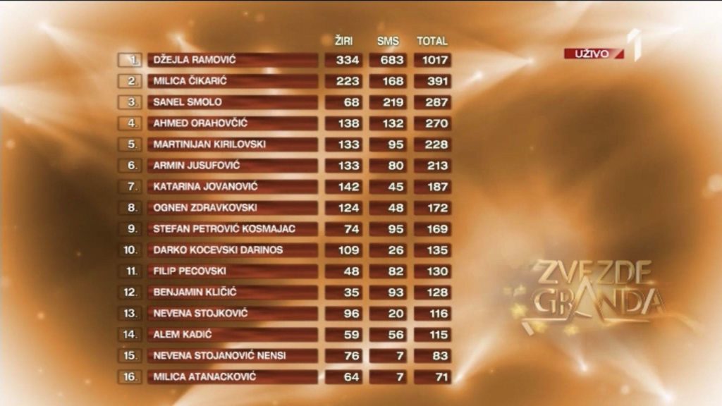 Sabiranjem glasova na tabeli sedamnaestogodišnja pjevačica iz Goražda je apsolutna pobjednica najpopularnijeg muzičkog takmičenja u regionu sa ukupno osvojenih 1.017 bodova.