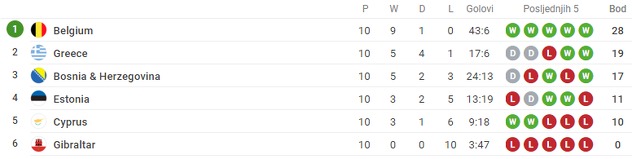 BiH je s petom pobjedom kvalifikacije okončala na trećem mjestu grupe H, dok je Estonija završila na četvrtoj poziciji.