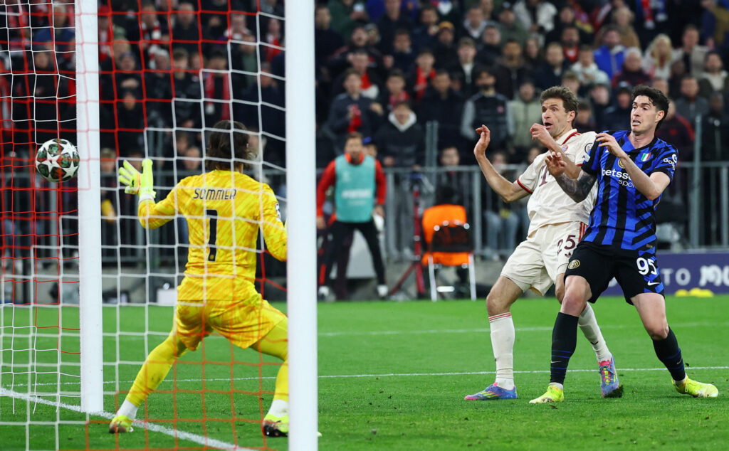Ipak, u 38. minuti do izražaja dolazi italijanska preciznost. Alessandro Bastoni probija lijevu stranu i šalje loptu u sredinu. Marcus Thuram je propušta petom, a Lautaro Martínez vanjskim dijelom stopala pogađa sami ugao gola – za vodstvo Intera i šok na Allianz Areni.