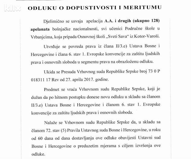 Ustavni sud BiH je još i ranije, u spetembru 2019. godine na istom tragu donio odluku kojom je potvrđeno da se čini diskriminacija u konkretnom slučaju bošnjačke djece u Vrbanjcima.
