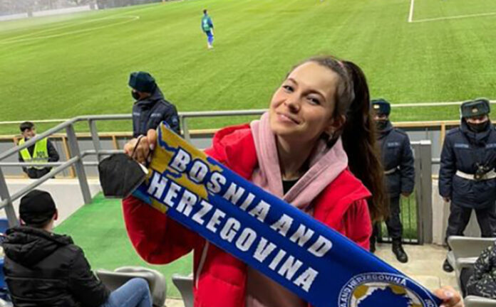 U sjeni odličnog nastupa “Zmajeva” u Nur-Sultanu i važne pobjede nad domaćim Kazahstanom, ostala je fotografija simpatične Ruskinje sa zastavom BiH na tribinama. Usamljena navijačica naše reprezentacije je Emina Malagić, rođena Moskovljanka, čije srce podjednako bije za Rusiju, ali i Bosnu i Hercegovinu.