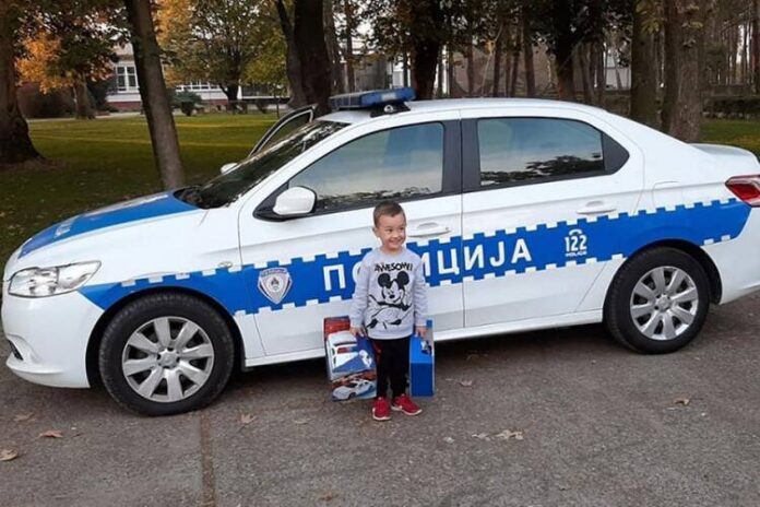 Bijeljinski policajci dječaku su uručili igračke policijskog automobila i motocikla i na oduševljenje slavljenika priuštili mu druženje u službenom vozilu.