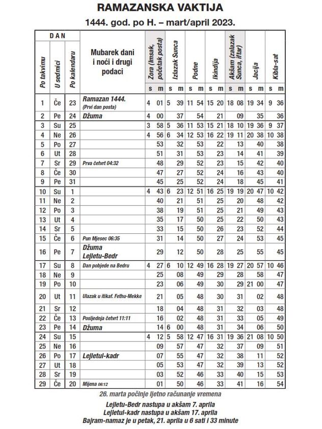 Zalaskom sunca večeras nastupa mjesec ramazan, a prvi dan posta bit će sutra 23. marta. Muslimani BiH i širom svijeta će nakon jacije-namaza večeras klanjati i prvu teraviju, a sutra će zapostiti prvi dan posta.