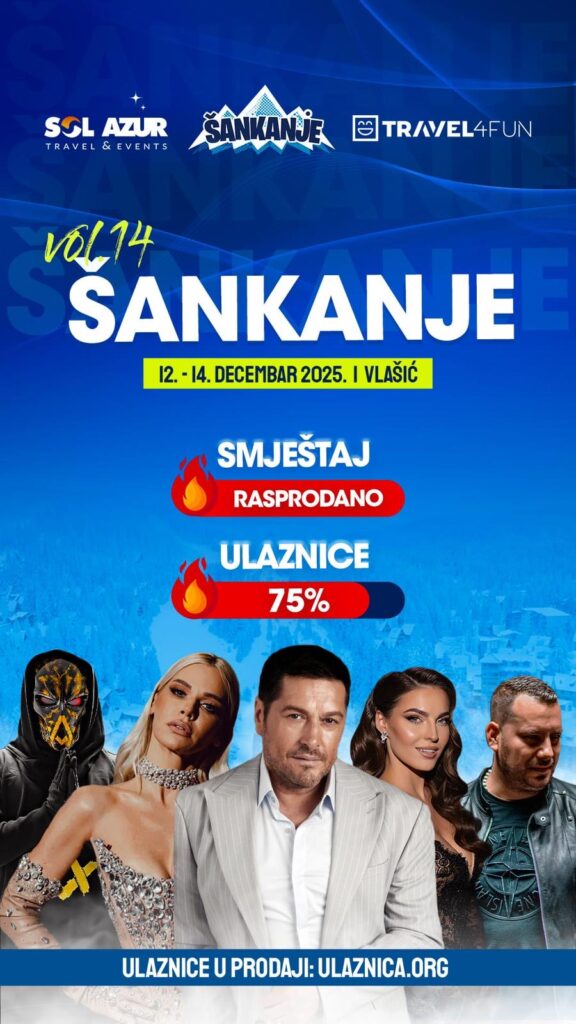 Ovogodišnje Šankanje 2025 na Vlašiću, najveći zimski muzički događaj u regionu, najavljuje spektakl kakav se rijetko viđa na planinama. Interesovanje je toliko veliko da je sav smještaj već rasprodan, dok je u pretprodaji otišlo 75 posto svih ulaznica, što potvrđuje da je riječ o manifestaciji koja iz godine u godinu postavlja nove rekorde posjećenosti.