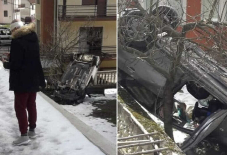 Saobraćajna nesreća, automobil završio na krovu u dvorištu porodične kuće