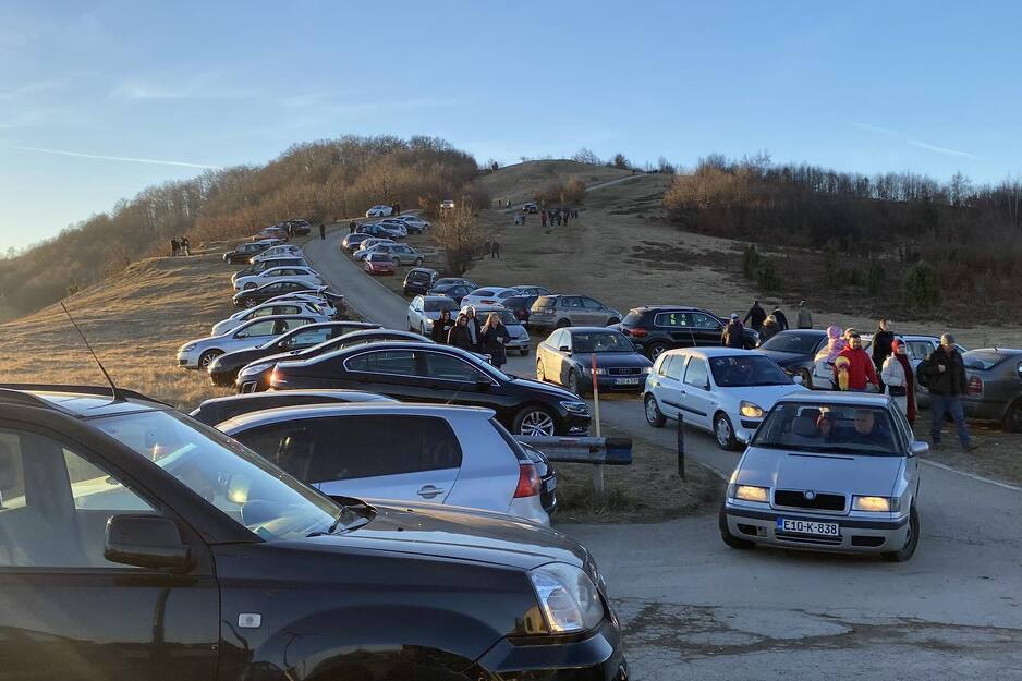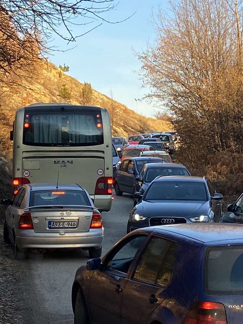 Stotine vozila na putu prema Smetovima čekalo je u koloni kako bi došli do izletišta, a među vozilima bio je i autobus koji besplatno prevozi građane na ovo izletište.