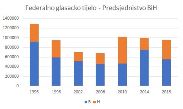 Iako se demografska slika znatno promijenila za dvije decenije vladavine nacionalnih stranaka, indikativno je da se broj birača od 1996. do 2018. godine smanjio uglavnom zbog pada zainteresovanosti bh. birača.