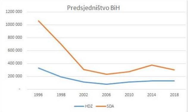 Indikativno je da i same nacionalne stranke, uobičavajući da ne mijenjaju kurs, gube glasače pa je SDA od 1996. godine izgubila dvije trećine, a HDZ jednu trećinu glasača.