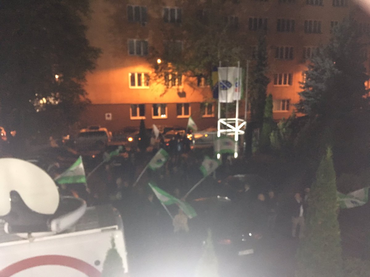 Kako je javila reporterka N1 u centralu SDA pristižu brojni automobili okićeni zastavama, parolama uz slavljeničke povike.