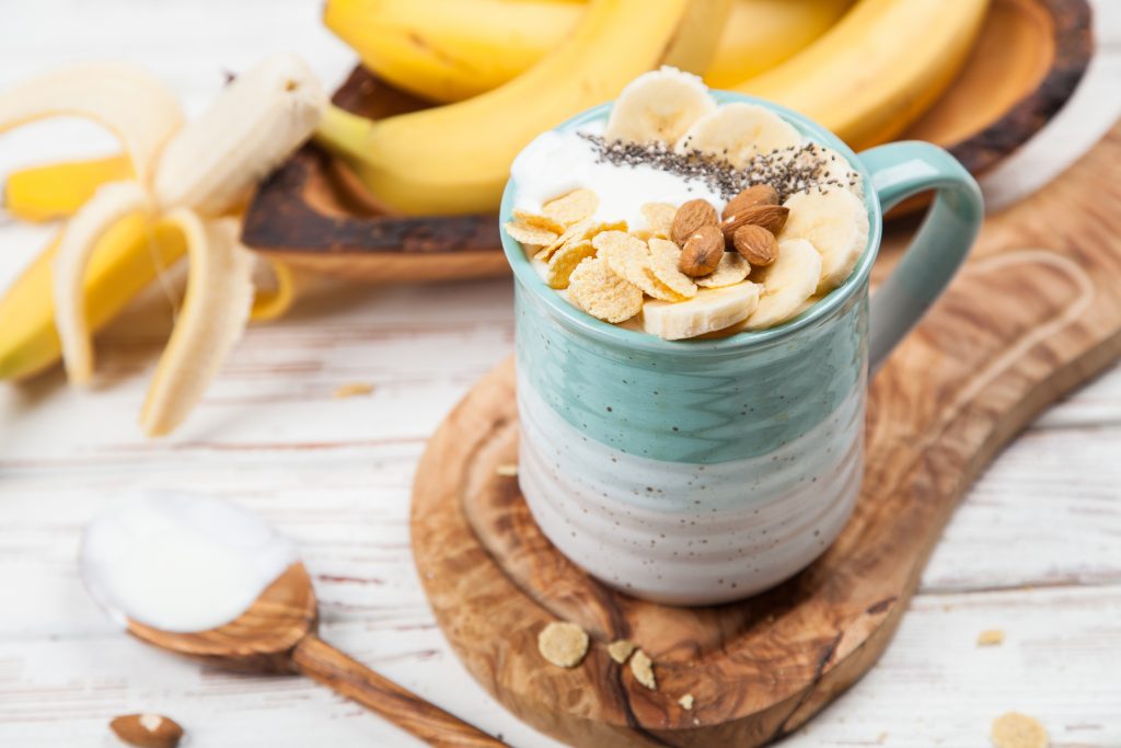 Ovo bi trebalo poslužiti kao zamjena za zdjelu žitarica, a djetetu bi se moglo jako svidjeti jer je slatko, no ujedno i hranjivo. Uzmite dvije čaše mlijeka i zagrijavajte u manjoj posudi do vrenja, a zatim u smjesu uspite jednu trećinu šoljice slatkog vrhnja. Miješajte dvije ili tri minute dok se smjesa ne zgusne. Uspite smjesu u zdjelice ili šolju, te dodajte u nju sjeckano voće i bademe.