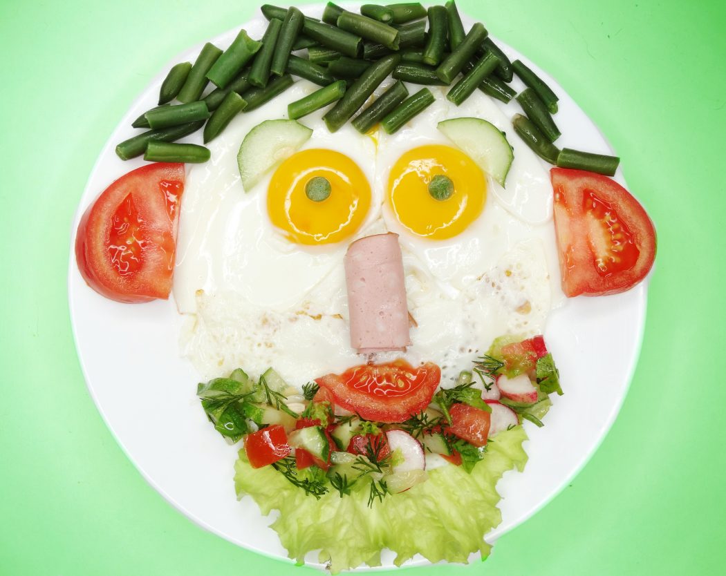 Jaja promiješajte s vodom i solju, izlijte ih u nauljenu tavu i ispecite 2 omleta. Preko poredajte povrće po želji, te dekorirajte što zanimljivije kako bi ih djeca s užitkom pojela i uživala u svom zdravom doručku.