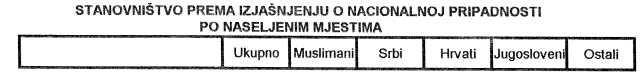 Po Popisu stanovništva iz 1991.godine, ovo selo brojalo je ukupno 303 stanovnika, od čega 196 Muslimana, 76 Srba, 30 Hrvata i 1 Jugosloven. Ostalih nije bilo. Danas je u selu, kažu ostalo nešto više od 40-tak porodica… Dakle, od 1991. godine, ne samo da nisu dobili ništa, već ih je novi sistem i nova vlast, između ostalog zbog nemara i nebrige otjerala sa svojih ognjišta.
