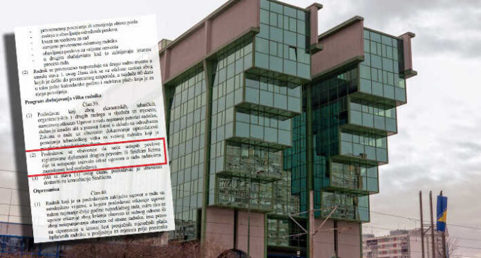 U članu 39. stav 2. ovog kolektivnog ugovora kojim se poput zakonskog rješenja reguliraju prava radnika stoji da se „poslodavac obavezuje da neće ustupiti poslove registrirane djelatnosti drugim pravnim ili fizičkim licima čije bi ustupanje izazvalo otkaze ugovora o radu radnicima zaposlenim kod poslodavca“.