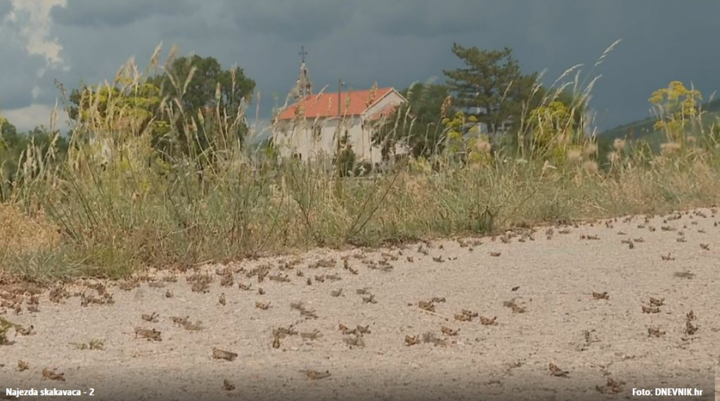 Milioni skakavaca preplavili su saobraćajnice i poljoprivredne usjeve u selu Štikovo, kod Drniša.