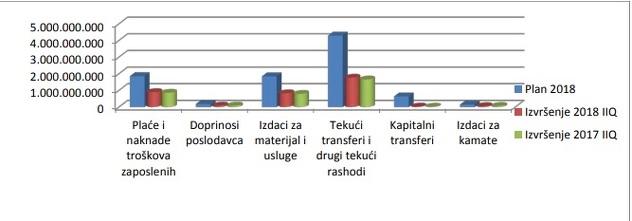 Za plaće i naknade troškova zaposlenih na općinskom nivou izdvojeno je 216,8 miliona KM. Dodatno u strukturi troškova za ovu svrhu učestvuju i plaće i naknade troškova zaposlenih u sektoru socijalne zaštite, a na njih otpada 36 miliona KM u prvih šest mjeseci ove godine.