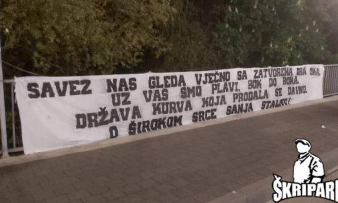 Navijači Širokog Brijega su u gradu sinoć okačili parolu u kojoj su vrijeđali državu Bosnu i Hercegovinu, kao i N/FS Bosne i Hercegovine piše Sport1.