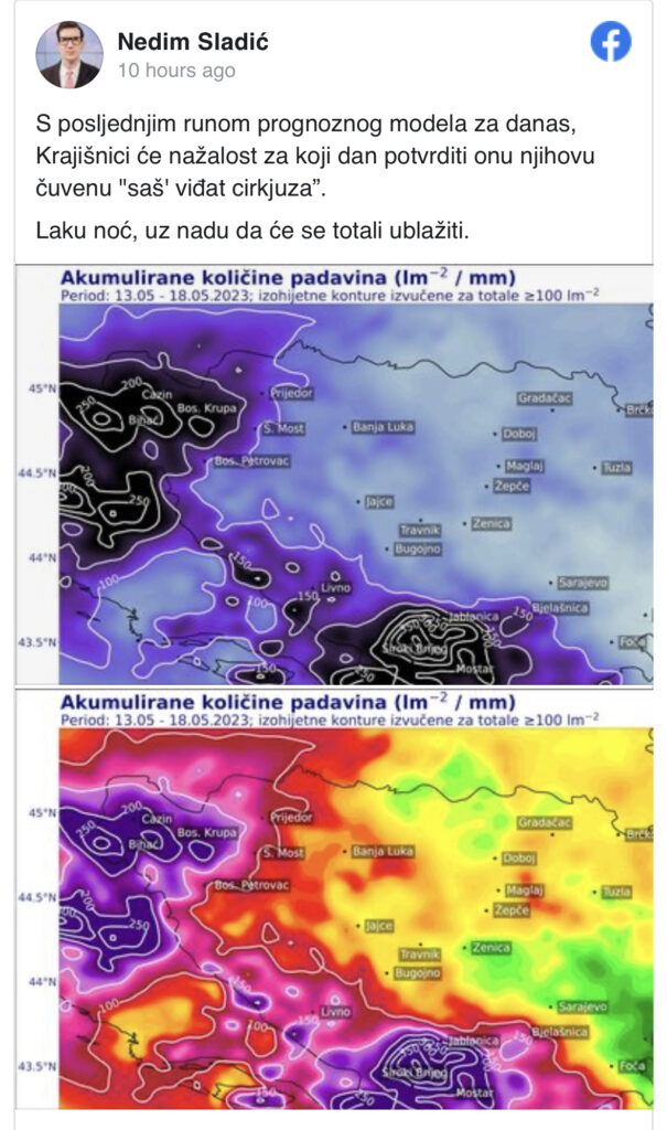 “S posljednjim runom prognoznog modela za danas, Krajišnici će nažalost za koji dan potvrditi onu njihovu čuvenu ‘saš’ viđat cirkjuza’.
