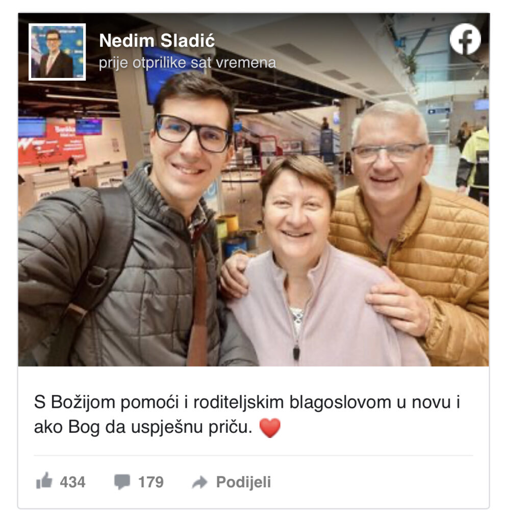 “S Božijom pomoći i roditeljskim blagoslovom u novu i ako Bog da uspješnu priču”, napisao je Sladić.