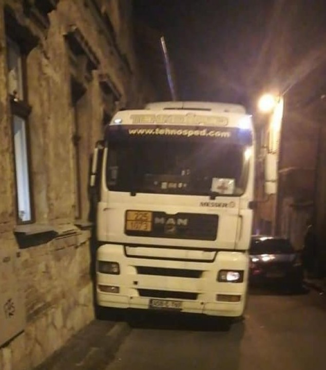 Fotografije, koje su objavljene na društvenoj mreži Facebook, pokazuju da su kamionu problem napravili i nepropisno parkirani automobili.