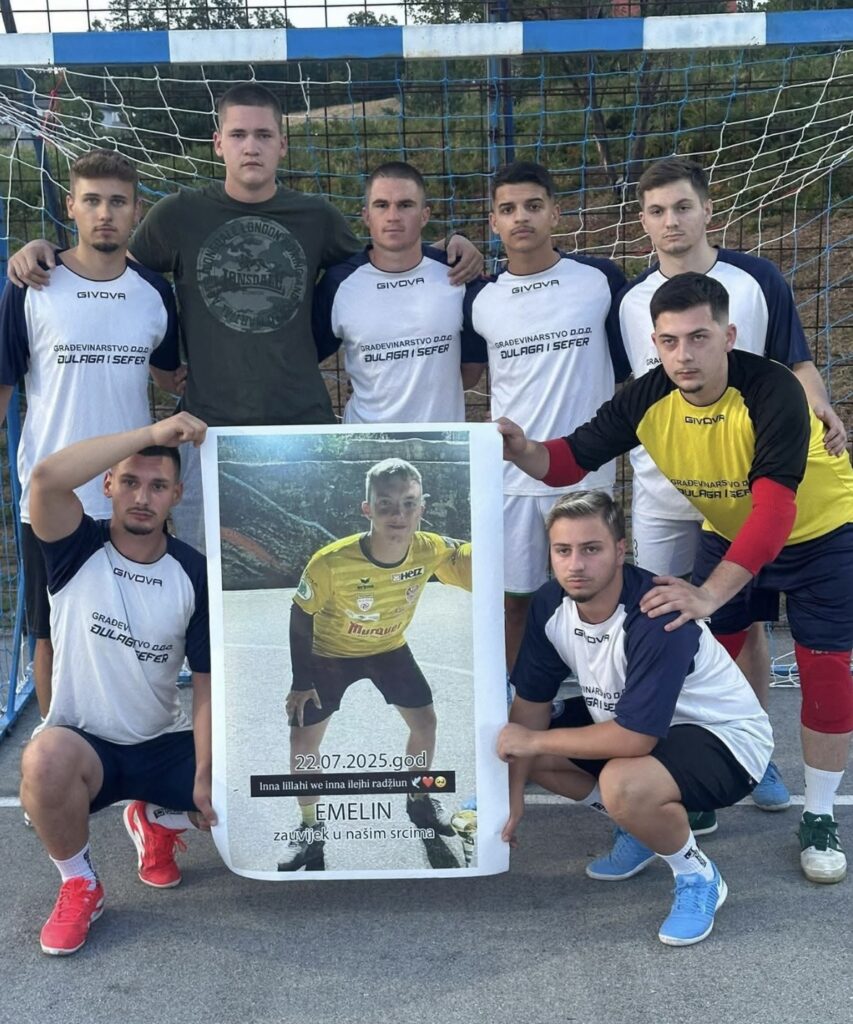 Večeras, na jednom od lokalnih turnira u Cazinu, zabilježena je scena koja je slomila mnoga srca – mladići iz ekipe “Građevinarstvo Dulaga i Sefer” stali su ispred gola bez svog prijatelja Emelina Mehića, koji je sinoć tragično izgubio život, piše 072info.