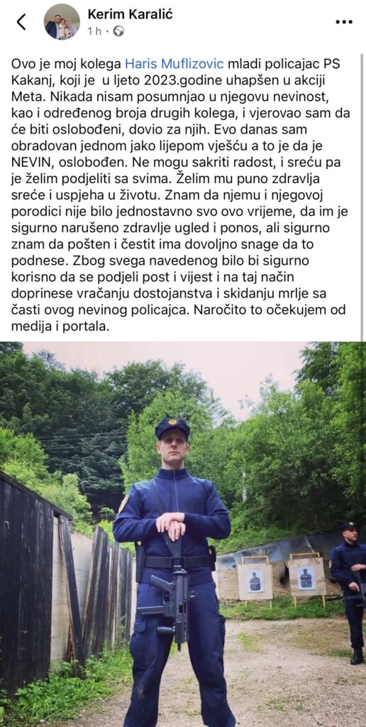 Karalić je posebno apelovao na medije i portale da ovu vijest objave, kako bi se doprinijelo vraćanju dostojanstva i skidanju mrlje sa časti nevinog policajca.