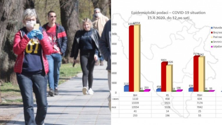 Iz Ministarstva civilnih poslova Bosne i Hercegovine danas su objavili da je ukupno 1.110 osoba u našoj zemlji zaraženo koronavirusom.