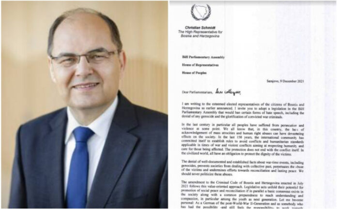 – Pišem cijenjenim izabranim predstavnicima građana Bosne i Hercegovine kako je ranije najavljeno. Pozivam vas da u Parlamentarnoj skupštini BiH usvojite zakon kojim bi se zabranili određeni oblici govora mržnje, uključujući negiranje bilo kakvog genocida i veličanje osuđenih ratnih zločinaca.