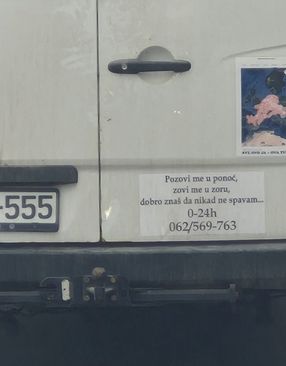 Neobičan, ali krajnje domišljat oglas zabilježen je danas u Zavidovićima, gdje je jedan dostavljač odlučio reklamirati firmu na nesvakidašnji način – koristeći stih iz pjesme pjevača Nedeljka Bajića Baje.