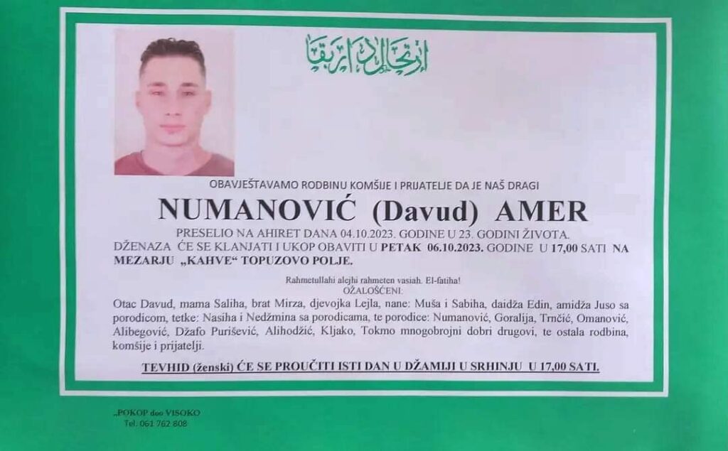 Jučer je na ahiret preselio Amer Numanović u 23-oj godini života.