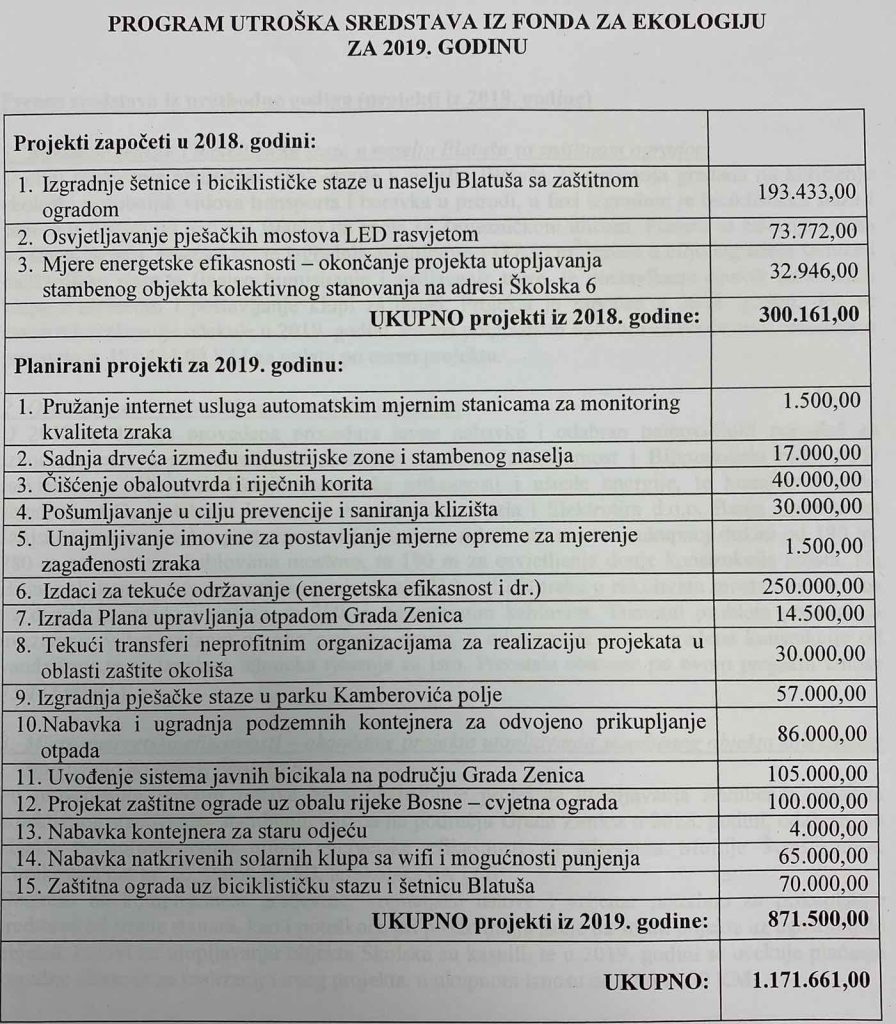 “Svake godine, Ministarstvo za prostorno uređenje, promet i komunikacije i zaštitu okoline ZDK Gradu Zenici vrši uplatu sredstava koja su namijenjena za podsticanje mjera zaštite i unaprjeđenja okoline. Ovim sredstvima su finansirani brojni eko projekti koje naši sugrađani već prepoznaju u Zenici, a kao što je osvjetljavanje pješačkih mostova LED rasvjetom, izgradnja šetnice i biciklističke staze u naselju Blatuša, utopljavanje stambenih objekata kolektivnog stanovanja, čišćenje obaloutvrda i riječnih korita kao što je bio slučaj sa koritom rijeke Kočeve, zatim izgradnja pješačke staze u parku na Kamberovića polju prema Adi Jagnjište, uvođenje sistema javnih bicikala, nabavka natkrivenih solarnih klupa sa WIFI-jem i mogućnošću punjenja elektronskih uređaja, nabavka kontejnera za staru odjeću itd. Raduje me da je značajan udio sredstava Fonda za zaštitu okoliša opredijeljen upravo za eko projekte u Zenici, a u narednom periodu ćemo nastojati opredijeliti i više sredstava jer zdravlje Zeničana i činjenica da svakodnevno udišu najnekvalitetniji zrak u državi, na Balkanu i šire, ostavlja nam u obavezu da se nastavimo odlučno i uporno boriti za rješavanje problematike aerozagađenja i drugih eko projekata u Zenici”, kaže Arnel Isak, ministar za prostorno uređenje, promet i komunikacije i zaštitu okoline ZDK.