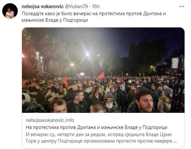 Vukanović, istina, vodi i blog kao novinar pa će jedno od njegovih objašnjenja ići u pravcu da je izvještavao s nekog događaja. Međutim, kao političar ima odgovornost i vjerovatno saznanja da dešavanja u Crnoj Gori imaju mnogo širu sliku.