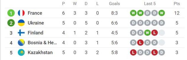 Lider Francuska je osvojila 12 bodova i jenom nogom je u Kataru, dok su Ukrajina i Finska na drugoj i trećoj poziciji sa po 5 bodova.