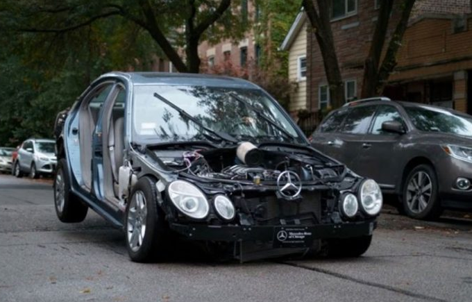 I kao što je to prethodno uradio sa rupama na putu, autor YouTube kanala Warped Perception je svojim “ogoljenim” Mercedesom riješio da demonstrira šta sve horizontalne prepreke na putu mogu da urade automobilu ako se na njih naleće u punoj brzini.