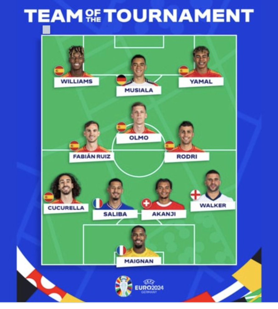 Nakon mnogo uzbudljivih utakmica i finala u kojem je Španija pobijedila Englesku, stigla je i zvanična potvrda za igrače koji su se najviše istakli.