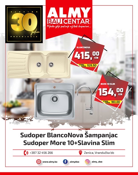 Sudoperi po sniženim cijenama u Baucentru Almy Zenica
