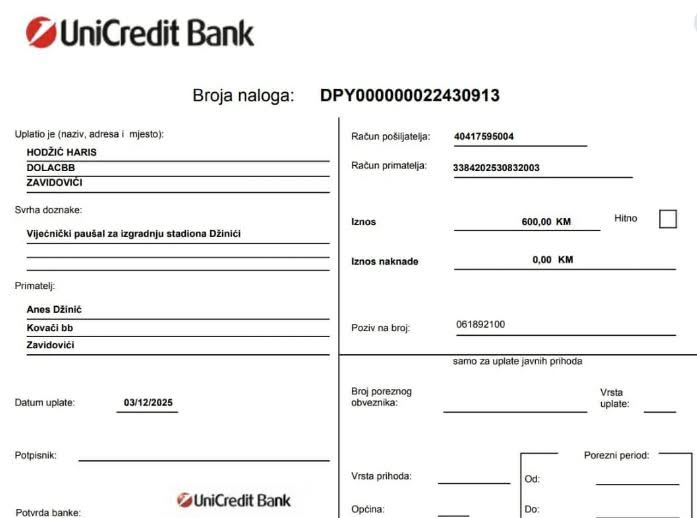 „Ova donacija pokazuje istinsku brigu za zajednicu i spremnost da se javna sredstva ulože u nešto što će ostati generacijama iza nas. Hvala Harisu Hodžiću na povjerenju, podršci i razumijevanju važnosti ovog projekta“, navodi se u objavi grupe Sela Džinića, uz poruku velike zahvalnosti.