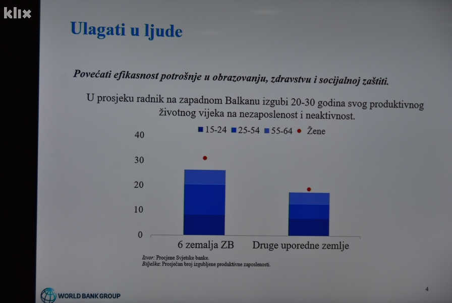 “Stopa nezaposlenosti je smanjena u 2018. godini, ali je i dalje visoka, posebno za žene i mlade. U nekim zemljama je pad nezaposlenosti proizašao iz povećane neaktivnosti radne snage i emigracije, a ne zbog novootvorenih radnih mjesta”, navode iz Svjetske banke.
