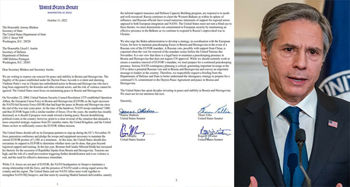 Američki senatori pisali Blinkenu: Putinov rat u Ukrajini je ohrabrio igrače u BiHAmerički senatori Jeanne Shaheen, Thom Tillis, Chris Murphy i Roger F. Wicker…12.10. u 17:30 / BiH, VijestiAmerički senatori pozvali bh. vlasti da nastave put ka članstvu u NATO-u i EUAmerički senatori Jeanne Shaheen i Ron Johnson – predsjedavajući i rangirani član…04.03. u 08:40 / Svijet, Vijesti Američki senatori pisali Blinkenu: Putinov rat u Ukrajini je ohrabrio igrače u BiH12.10. u 17:30 / BiH, VijestiAmerički senatori pozvali bh. vlasti da nastave put ka članstvu u NATO-u i EU04.03. u 08:40 / Svijet, Vijesti