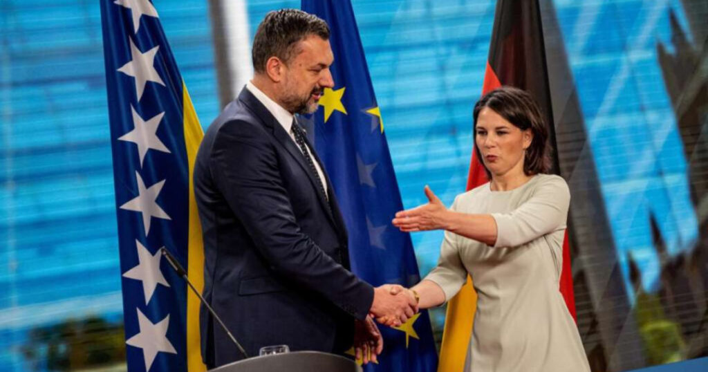 (VIDEO) New York: Bećirović razgovarao s predsjednicom Generalne skupštine UN-a Annalenom BaerbockČlan Predsjedništva BiH dr. Denis Bećirović razgovarao je u sjedištu Ujedinjenih nacija…19.11. u 17:48 / BiH, VijestiAnalena Berbok na šminku koristi 136.000 eura godišnje: “Inače ste kao grobar”Njemačka ministrica vanjskih poslova Analena Berbok (Annalena Baerbock)našla se na udaru kritika…30.06. u 09:20 / Svijet, VijestiNastavak diplomatske ofanzive na BiH: Annalena Baerbock dolazi u SarajevoMinistar vanjskih poslova Bosne i Hercegovine Elmedin Konaković dočekat će u utorak…01.03. u 17:00 / BiH, VijestiKonaković sa Baerbock: Tema su bile investicije u BiH, ali i priznavanje bh. vozačkih dozvolaMinistar vanjskih poslova Elmedin Konaković boravio je danas u službenoj posjeti Njemačkoj…16.06. u 18:10 / BiH, VijestiŠefica njemačke diplomatije: Vodimo rat protiv RusijeMinistrica vanjskih poslova Analena Berbok (Annalena Baerbock) je tokom rasprave u Parlamentarnoj…26.01. u 16:00 / Svijet, VijestiBerbok: Razmotrit ćemo prijedlog za kandidatski status BiH, važno je da RS prekine s blokadom državnih institucijaNjemačka će pomno razmotriti preporuku Evropske komisije za dodjelu kandidatskog statusa Bosni…21.10. u 21:30 / BiH, VijestiBaerbock: Ne smijemo više gubiti vrijeme, RS intenzivira kurs ka otcjepljenju od BiHNjemačka ministrica vanjskih poslova Annalena Baerbock ubrzava tempo u raspravi o približavanju…02.07. u 15:31 / BiH, VijestiNova Njemačka na BalkanuSvako se češe tamo gdje ga svrbi. Tako je i Milorad Dodik,…14.03. u 15:00 / BiH, VijestiBaerbock: Schmidt ima našu podrškuNjemačka ministrica Annalena Baerbock je još jednom napomenula da je momenat u…10.03. u 13:45 / BiH, VijestiZavršen sastanak Šmita i Berbok: O granicama BiH se ne može pregovaratiNakon sastanka visokog predstavnika Kristijana Šmita (Christian Schmidt) i ministrice vanjskih poslova…10.03. u 13:05 / BiH, Vijesti (VIDEO) New York: Bećirović razgovarao s predsjednicom Generalne skupštine UN-a Annalenom Baerbock19.11. u 17:48 / BiH, VijestiAnalena Berbok na šminku koristi 136.000 eura godišnje: “Inače ste kao grobar”30.06. u 09:20 / Svijet, VijestiNastavak diplomatske ofanzive na BiH: Annalena Baerbock dolazi u Sarajevo01.03. u 17:00 / BiH, VijestiKonaković sa Baerbock: Tema su bile investicije u BiH, ali i priznavanje bh. vozačkih dozvola16.06. u 18:10 / BiH, VijestiŠefica njemačke diplomatije: Vodimo rat protiv Rusije26.01. u 16:00 / Svijet, VijestiBerbok: Razmotrit ćemo prijedlog za kandidatski status BiH, važno je da RS prekine s blokadom državnih institucija21.10. u 21:30 / BiH, VijestiBaerbock: Ne smijemo više gubiti vrijeme, RS intenzivira kurs ka otcjepljenju od BiH02.07. u 15:31 / BiH, VijestiNova Njemačka na Balkanu14.03. u 15:00 / BiH, VijestiBaerbock: Schmidt ima našu podršku10.03. u 13:45 / BiH, VijestiZavršen sastanak Šmita i Berbok: O granicama BiH se ne može pregovarati10.03. u 13:05 / BiH, Vijesti