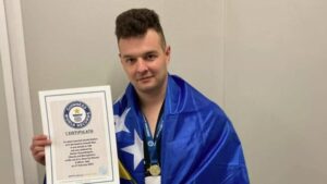 Sportist iz Visokog postavio svoj peti Ginisov rekord: Belmin Osmanbegović razbio 160 ploča za 49 sekundiU Milanu, Italija, prošle sedmice su se okupili Ginisovi rekorderi iz cijelog…26.02. u 00:19 / BiH, SportBelmin Osmanbegović oborio dva Guinnessova rekorda!Veliki spektakl u organizaciji Taekwondo kluba “Fenix” iz Visokog održan je u…26.05. u 22:18 / BiH, Sport Sportist iz Visokog postavio svoj peti Ginisov rekord: Belmin Osmanbegović razbio 160 ploča za 49 sekundi26.02. u 00:19 / BiH, SportBelmin Osmanbegović oborio dva Guinnessova rekorda!26.05. u 22:18 / BiH, Sport