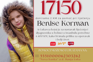 17150 za liječenje djevojčice BeniseUdruženje građana Humanitas pokreće donatorsku akciju s ciljem prikupljanja sredstava za liječenje…10.11. u 22:39 / BiH, Vijesti 17150 za liječenje djevojčice Benise10.11. u 22:39 / BiH, Vijesti