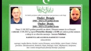 Stotine ljudi na dženazi ocu i sinu OnderĐengiz i Denis Onder, otac i sin, žrtve pomahnitalog Nermina Sulejmanovića iz…15.08. u 14:06 / BiH, VijestiArmin Šaković: Kad je protestna šetnja za Denisa Ondera, nedužno ubijenog u muškocidu?Pomahnitali Nermin Sulejmanović je u petak u Gradačcu likvidirao nevjenčanu suprugu Nizamu…15.08. u 08:30 / Muzika/TV, ZabavaDanas dženaza Đengizu i Denisu Onderu iz Gradačca, koje je ubio Nermin SulejmanovićĐengizu i Denisu Onderu, ocu i sinu, koji su žrtve pomahnitalog fitnes…15.08. u 08:15 / BiH, VijestiSutra dženaza Đengizu i Denisu Onderu iz Gradačca, koje je ubio Nermin SulejmanovićĐengiz i Denis Onder, otac i sin, žrtve su pomahnitalog fitnes trenera…14.08. u 15:50 / BiH, Vijesti Stotine ljudi na dženazi ocu i sinu Onder15.08. u 14:06 / BiH, VijestiArmin Šaković: Kad je protestna šetnja za Denisa Ondera, nedužno ubijenog u muškocidu?15.08. u 08:30 / Muzika/TV, ZabavaDanas dženaza Đengizu i Denisu Onderu iz Gradačca, koje je ubio Nermin Sulejmanović15.08. u 08:15 / BiH, VijestiSutra dženaza Đengizu i Denisu Onderu iz Gradačca, koje je ubio Nermin Sulejmanović14.08. u 15:50 / BiH, Vijesti