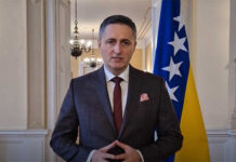 Kasumović podržao Bećirovića za člana Predsjedništva: Time pokazujemo Zapadu da smo evropski muslimaniGradonačelnik Zenice i predsjednik stranke Bosanskohercegovačka inicijativa Fuad Kasumović odlučio se javno…10.12. u 23:41 / BiH, VijestiDr. Bećirović u Jelisejskoj palati s Emmanuelom i Brigitte MacronČlan Predsjedništva BiH dr. Denis Bećirović prisustvovao je svečanoj večeri, koju je…30.10. u 10:54 / BiH, VijestiDr. Denis Bećirović na otvaranju Pariškog mirovnog forumaČlan Predsjedništva BiH dr. Denis Bećirović učestvuje na osmom Pariškom mirovnom forumu,…29.10. u 10:07 / BiH, VijestiBećirović primio u nastupnu posjetu ambasadora Republike Indonezije u Bosni i Hercegovini Manahana M.P. SitompulaČlan Predsjedništva BiH dr. Denis Bećirović primio je u nastupnu posjetu ambasadora Republike Indonezije u Bosni iHercegovini Manahana M.P.…30.07. u 15:17 / BiH, VijestiU subotu Kongres SDP-a, niko se nije kandidovao za predsjednika: Nikšić ostaje na čelu stranke?Deveti kongres Socijaldemokratske partije bit će održan 5. jula u Sarajevu sa…03.07. u 23:51 / BiH, VijestiBećirović primio u oproštajnu posjetu rezidentnu koordinatoricu UN-a u BiH Ingrid MacdonaldČlan Predsjedništva BiH dr. Denis Bećirović primio je u oproštajnu posjetu rezidentnu koordinatoricu Ujedinjenih nacija (UN) u Bosni i Hercegovini dr. Ingrid Macdonald. …02.07. u 15:04 / BiH, VijestiBećirović upozorio ambasadoricu Španije: “Ne smijemo podcijeniti prijetnju proruskih separatista”Član Predsjedništva BiH dr. Denis Bećirović razgovarao je s ambasadoricom Kraljevine Španije…25.06. u 17:26 / BiH, VijestiBećirović: Ne smijemo pokleknuti, može li se ponoviti genocid?Srebrenica je naša bolna rana koja nas sve podsjeća na užasne strahote…21.06. u 16:35 / BiH, VijestiBećirović i švedska ministrica: Švedska podržava put BiH ka EU i NATO-uČlan Predsjedništva BiH dr. Denis Bećirović razgovarao je s ministricom za Evropu…19.06. u 17:33 / BiH, VijestiKomšić i Bećirović u Londonu razgovarali o jačanju partnerskih veza između dvije državeČlanovi Predsjedništva Bosne i Hercegovine Željko Komšić i Denis Bećirović sastali su…17.06. u 21:46 / BiH, Vijesti Kasumović podržao Bećirovića za člana Predsjedništva: Time pokazujemo Zapadu da smo evropski muslimani10.12. u 23:41 / BiH, VijestiDr. Bećirović u Jelisejskoj palati s Emmanuelom i Brigitte Macron30.10. u 10:54 / BiH, VijestiDr. Denis Bećirović na otvaranju Pariškog mirovnog foruma29.10. u 10:07 / BiH, VijestiBećirović primio u nastupnu posjetu ambasadora Republike Indonezije u Bosni i Hercegovini Manahana M.P. Sitompula30.07. u 15:17 / BiH, VijestiU subotu Kongres SDP-a, niko se nije kandidovao za predsjednika: Nikšić ostaje na čelu stranke?03.07. u 23:51 / BiH, VijestiBećirović primio u oproštajnu posjetu rezidentnu koordinatoricu UN-a u BiH Ingrid Macdonald02.07. u 15:04 / BiH, VijestiBećirović upozorio ambasadoricu Španije: “Ne smijemo podcijeniti prijetnju proruskih separatista”25.06. u 17:26 / BiH, VijestiBećirović: Ne smijemo pokleknuti, može li se ponoviti genocid?21.06. u 16:35 / BiH, VijestiBećirović i švedska ministrica: Švedska podržava put BiH ka EU i NATO-u19.06. u 17:33 / BiH, VijestiKomšić i Bećirović u Londonu razgovarali o jačanju partnerskih veza između dvije države17.06. u 21:46 / BiH, Vijesti