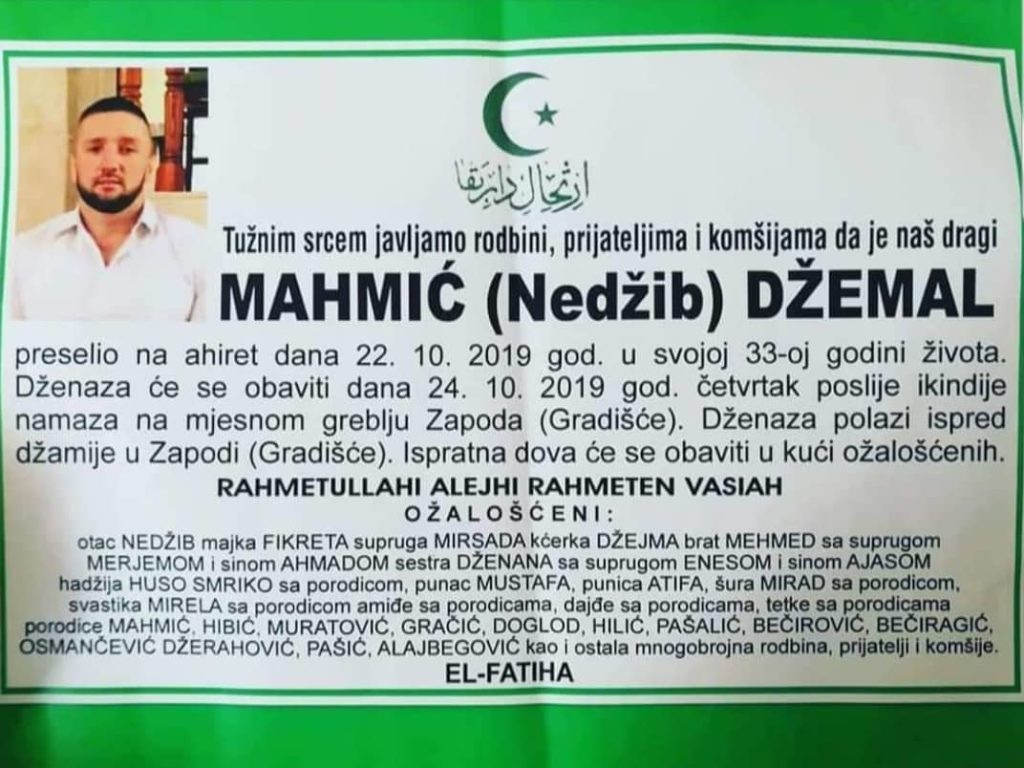 Dženaza-namaz Džemalu Mahmiću, bivšem šampionu u kiks-boksu, bit će klanjana sutra, poslije…