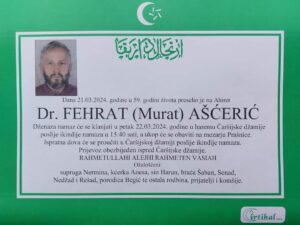 TUŽNE VIJESTI: Zauvijek nas je napustio dr. Fehrat AšćerićZenica tuguje nakon vijesti da ih je zauvijek u 59. godini života…21.03. u 18:28 / BiH, Vijesti TUŽNE VIJESTI: Zauvijek nas je napustio dr. Fehrat Ašćerić21.03. u 18:28 / BiH, Vijesti