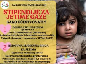 Palestinska zajednica u BiH uputila apel za pomoć djeci bez roditelja u GaziPalestinska zajednica u Bosni i Hercegovini pozvala je građane, institucije i dijasporu…24.01. u 14:23 / Svijet, Vijesti Palestinska zajednica u BiH uputila apel za pomoć djeci bez roditelja u Gazi24.01. u 14:23 / Svijet, Vijesti